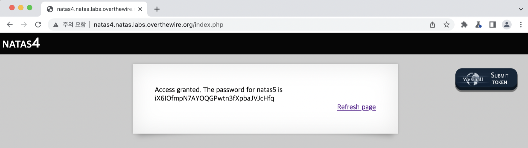 우리는 리퍼러를 조작하여 natas4 접근을 natas5에서 접근하는 것으로 변경해줘야 한다.