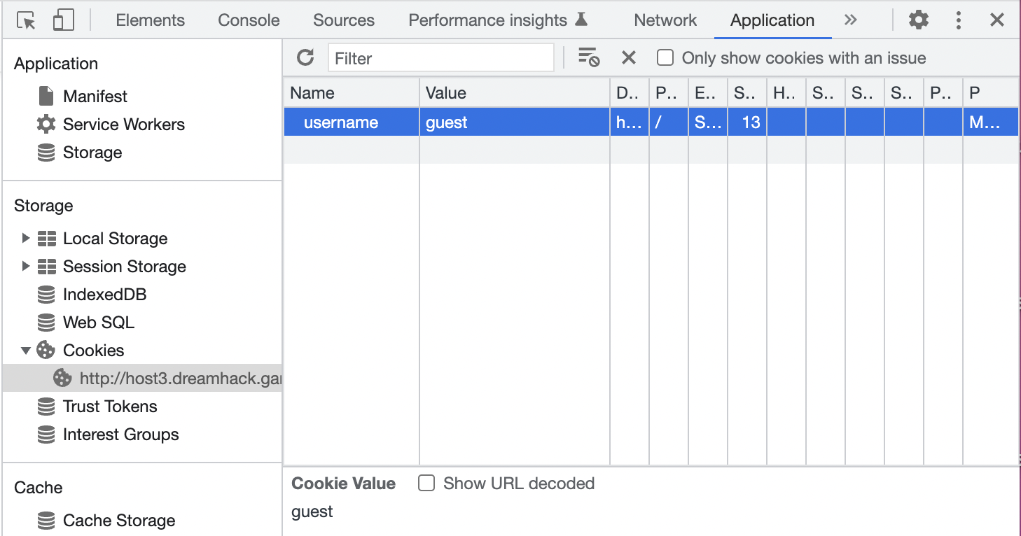 로그인이 되었지만 admin은 아니라고 하므로 개발자 도구에서 쿠키를 살펴본다.